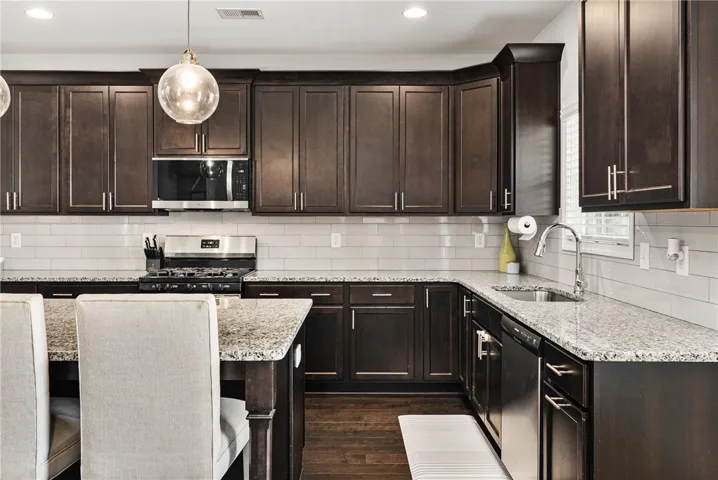 This 4BR/3.5BA home offers over 3,000 sqft with a layout designed for how people actually live. The main level welcomes you with a bright two-story entry and flows into an open living area with tall ceilings, a gas fireplace, and open space. The kitchen is centered around everyday life, featuring granite countertops, a large island, gas range, abundant cabinetry, and a walk-in pantry. A flexible front room offers options for a home office or formal dining.