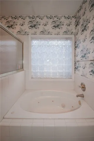 The primary suite features a walk-in closet, double vanity, and a relaxing garden tub, offering a private retreat at the end of the day.