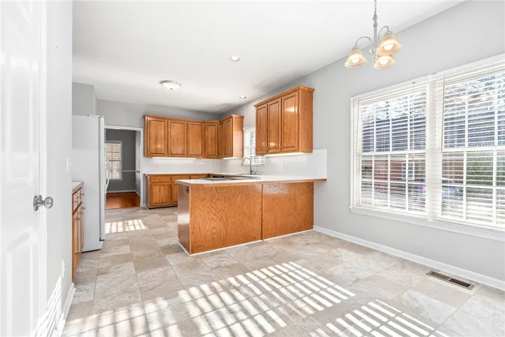 Well-maintained 3 bedroom, 2.5 bath home located in the highly sought-after Grove Hill neighborhood. This inviting home features a large front porch perfect for relaxing and welcoming guests. Inside, you’ll find a spacious eat-in kitchen with ample cabinet space, along with a separate, generously sized dining room ideal for entertaining. The large family room offers a cozy fireplace and plenty of room to gather. The primary suite is conveniently located on the main level, providing comfort and privacy. Upstairs includes two additional bedrooms and a full bath with private vanity areas for each bedroom, great for family or guests. This home offers abundant attic storage throughout. Step outside to enjoy a private backyard, plus the convenience of a carport and additional outdoor storage. A wonderful opportunity to own a well-cared-for home in a desirable location. Home includes refrigerator and washer/dryer. Neighborhood includes clubhouse, 2 pools and playground.