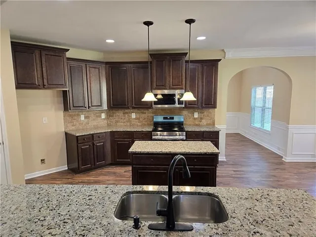 Very clean and modern home, fresh paint and new flooring throughout. Open spaces and large rooms on both floors. Back porch with fireplace. Home is close to cul-de-sac. Stainless steel appliances, including a new refrigerator. Home warranty included.