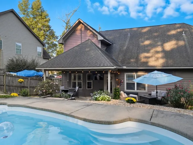 Welcome to this lovingly maintained, move-in ready property ideally located near Auburn University – just a block away from a multi-use path to downtown and campus – and convenient to top-rated elementary schools, shopping, and I-85. Offering thoughtful updates throughout— a brand-new roof, HVAC (2022) and water heater (2022), fresh paint, and updated flooring— enjoy peace of mind and everyday comfort. An inviting front porch leads into a true foyer that opens to a bright and spacious living room with soaring ceilings and peaceful views of the backyard oasis—perfect for both everyday moments and family gatherings. The kitchen is designed for connection, offering ample cabinetry and prep space, a breakfast bar for casual meals, and easy flow into the large dining space, ideal for holidays and celebrations. The conveniently located laundry room just off the garage – don’t miss the storage shelves designed to keep life organized! The main-level primary suite provides a quiet retreat, featuring a beautifully remodeled en suite with a spacious tile shower, soaking tub, double vanity, and a walk-in closet outfitted with a high-end modular system that can be easily customized to fit your family’s needs. A half bath on the main level adds convenience for guests. Upstairs, three additional bedrooms and a large multipurpose bonus room offer flexibility for a playroom, media room, homework space, or home office or gym. Two bedrooms share a hall bathroom, while the third includes a private bath. Step outside to enjoy a true backyard oasis designed with family fun and entertaining in mind. Multiple patios provide plenty of space for lounging, dining, and hosting friends, all surrounding a sparkling saltwater pool complete with a sitting ledge—perfect for relaxing from the summer through the fall months. This exceptional home blends space, comfort, and location with outdoor living the whole family will love. The neighborhood pool and pond are additional perks!