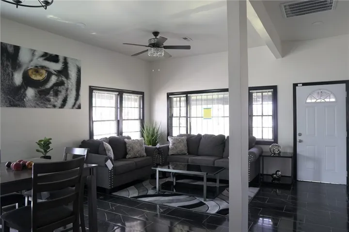 This property features, 2 bedrooms & 2 full bathrooms with 10ft ceiling and marble floors. It also includes a laundry area with hookups, recessed lighting, and convenient kitchen appliances. This home is situated on a fenced lot with outdoor space including a porch/deck area ideal for enjoyment.