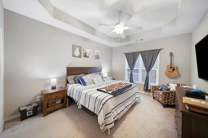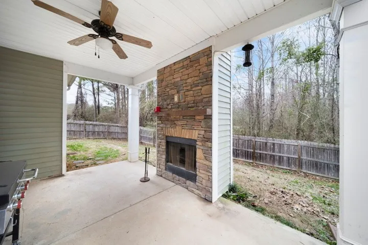 This beautiful home features a desirable split floor plan with a spacious primary suite showcasing a tray ceiling, two large closets, dual vanities, a relaxing garden tub, and a separate shower. The kitchen is thoughtfully designed for both function and style with a large island, granite countertops, abundant counter space, and a pantry—ideal for everyday meals and gatherings. Entertain with ease in the formal dining room or enjoy casual meals in the breakfast room. The private fourth bedroom is located upstairs with its own bathroom, making it perfect for guests or a home office. Step outside to the covered patio complete with a cozy wood-burning fireplace, perfect for year-round enjoyment. The fenced backyard and quiet cul-de-sac lot offer privacy and peace of mind. Residents also enjoy access to the neighborhood clubhouse and pool.