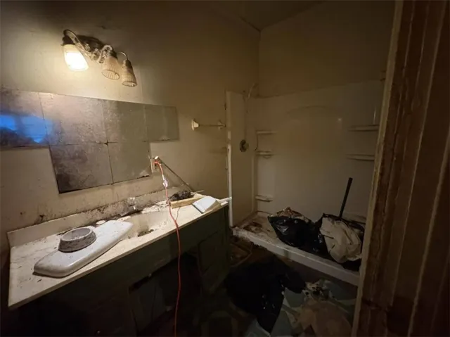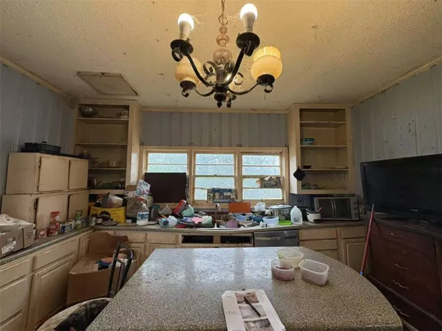Explore the potential of this 1,592 sq. ft. structure situated on a spacious .46-acre lot. This property features a wood-plank exterior with a brick base and a shingle roof. The interior layout offers a kitchen space with black appliances and laminate.