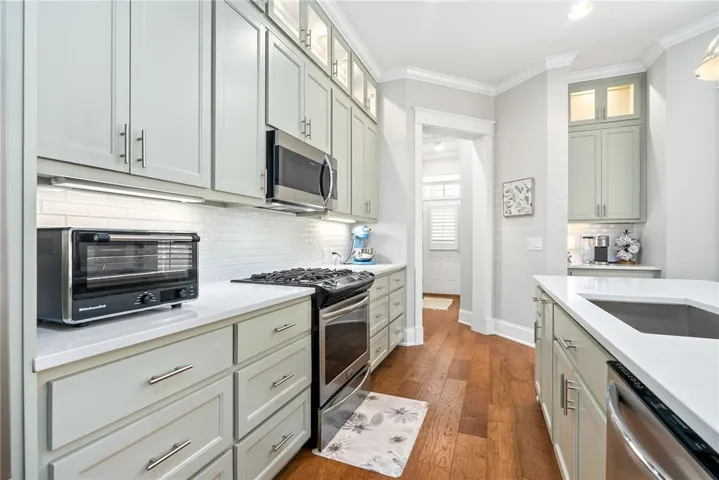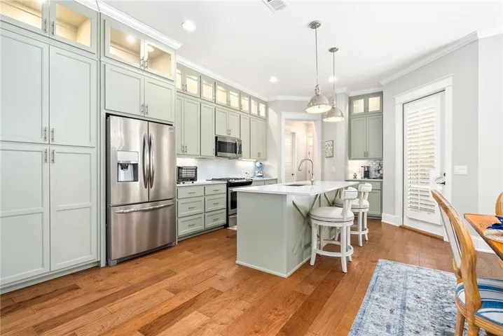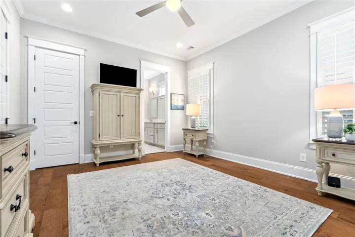 Welcome to this beautiful, craftsman-style home in National Village! At first glance you’ll notice the covered front porch, then as you walk inside, you’ll be blown away by all the gorgeous features and upgrades! The living room greets you with 10′ ceilings, wood floors, and a gas fireplace surrounded by beautiful built-ins! Open to the kitchen and dining area, this is a wonderful and cozy place for gathering! The kitchen is equipped with stainless steel appliances, quartz countertops, and custom cabinets that go all the way to the ceiling! Off the kitchen is the primary bedroom, with a gorgeous en suite bathroom, creating a perfect haven for any owner! Back at the front of the home, you’ll find the secondary bedrooms and another full bath. Outside offers a screened-in porch, professionally landscaped yard, double carport, and utility closet. Don’t miss out on this well-maintained home in a great neighborhood boasting great amenities, including: lawn maintenance, garbage collection, access to the Marriott’s 3 pools, exercise room, dry saunas, tennis courts & pickleball courts, complimentary play on the short course and unlimited range balls at Grand National Robert Trent Jones Golf Trail, access to the spa and dry saunas, discounted guest rooms and food. Schedule a tour today!