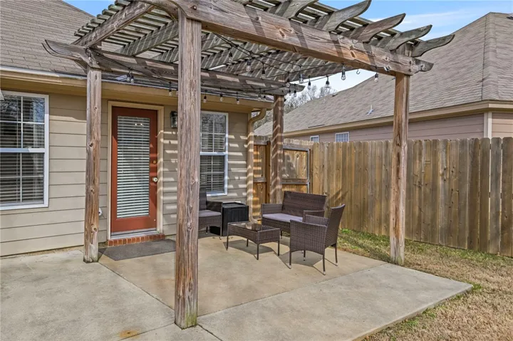 Welcome to 638 Glenmede Lane, a charming 3-bedroom, 2-bath home in the desirable Stoneybrooke Plantation neighborhood! Beautiful open concept floorplan, great for entertaining. This residence features tile and LVP floors throughout, no carpet, and lots of natural light, and an open living area perfect for entertaining. The kitchen offers ample cabinetry, and a functional layout open to the living space. The primary suite includes a walk-in closet and private bath, while two additional bedrooms provide comfort and versatility for family or guests. Enjoy the private backyard with patio and pergola, perfect for outdoor gatherings or relaxing in your own space. The attached 2-car garage adds convenience and extra storage. Double pane windows throughout (Green Energy) The following have been updated: roof 2021, built in microwave 2024, water heater 2024. outside HVAC 2023, painted throughout 2026, privacy fence installed 2023. Security wired throughout, attic fan replaced 2023, dishwasher and refrigerator 2020, doggie door to garage 2024.