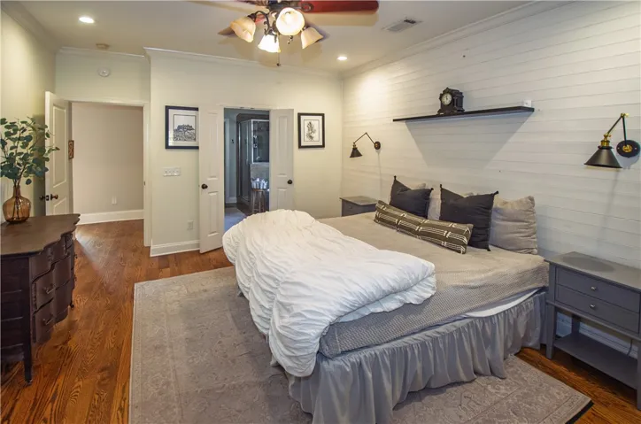 Welcome to this quaint and charming home in the greatly desired Camden Ridge S/D! This 1,949-square-foot European-inspired home features a stunning mortar-washed exterior and timeless architectural charm. As you step inside, brick flooring in foyer continues the inspiration of European design. The thoughtful split plan three-bedroom layout offers warm and inviting living spaces, including a cozy den with a wood-burning fireplace—perfect for relaxing evenings. open to the living area, a well planned kitchen provides storage and accessibility. A custom designed open pantry keeps all of your baking needs within reach! an elegant half bath, located just off the kitchen provides convenience for your guests! Large transom windows with plantation shutters fill the dining room with natural sunlight, creating an airy and welcoming atmosphere. The primary suite is a true retreat with shiplap accent wall in the bedroom and bath to create an ambiance of coziness. the primary bath is complete with a classic clawfoot tub, a separate shower and huge walk-in closet with custom cabinetry. Step outside to enjoy the screened-in back porch, accessible through the primary bedroom or breakfast room, and overlooking a pristine backyard recently landscaped with raised garden beds and pebbled stone walkways, or sit in the outdoor swing under the garden arbor for an ideal morning coffee or a peaceful evening outdoors while overlooking an original Toomers Oak planted in the backyard! This home blends character, comfort, and style in every detail. home has wiring for a generator available for those emergencies that may arise! Roof replaced in 2021, privacy fence replaced 2023, ADT hookups available;