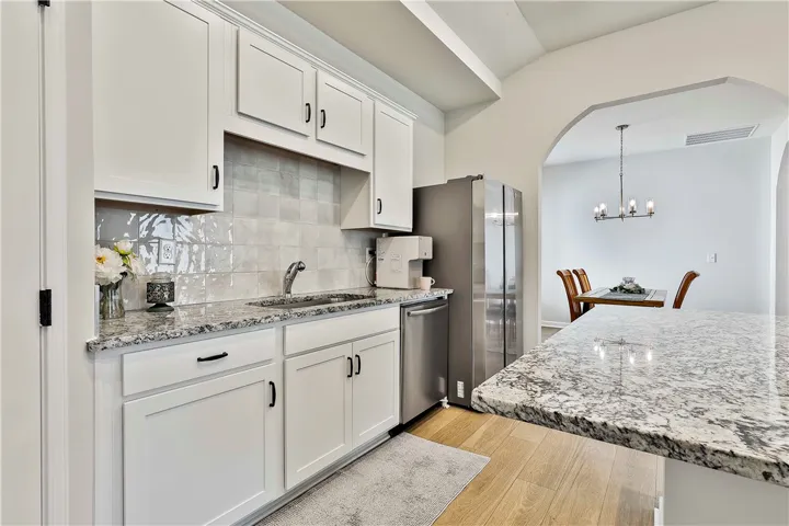The kitchen shines with crisp white cabinetry, stylish backsplash, upgraded countertops, and stainless steel appliances, creating a bright and inviting space for cooking and entertaining. The primary suite is a true retreat, offering a tiled walk-in shower with glass door, double vanity, and a private door to the master closet. Thoughtfully updated lighting fixtures throughout add warmth and style.