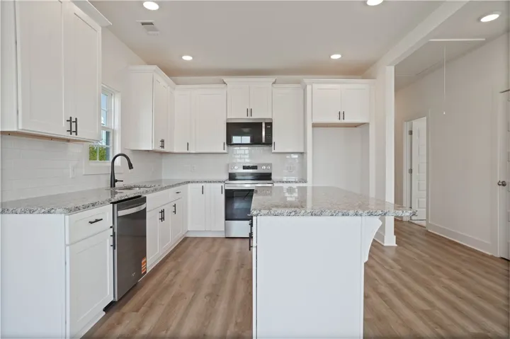 One of a kind!! Move-In Ready 4bed 3bathroom Designer Home! The Emily features tons of natural light & a large covered back patio for this 4bed 3bath home with 1,590sq feet. From the front door, the entrance welcomes guests into the open concept living room, dining room & kitchen. The living room features a HIGH vaulted ceiling & tall windows inviting natural light to fill the space. The kitchen boasts a large center island, soft close cabinets & drawers and Whirlpool appliances. As you make your way through the home, bedrooms two and three will be to your left, joined together by a Jack & Jill bathroom that features a large single vanity. On the right, you’ll find the primary bedroom & en-suite bathroom. The owner’s bedroom features large windows that overlook the covered back porch & a spacious walk-in closet. Bedroom four is on the back of the home along with 3rd full hall bath.