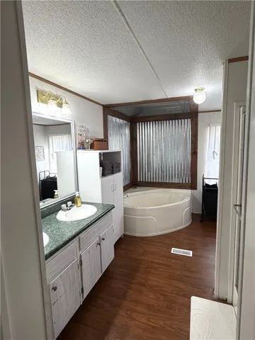 The primary bedroom easily accommodates a king-size bed and features custom trim and a ceiling fan. The primary bathroom offers a large garden tub, separate shower, dual vanity sinks, and a large closet.