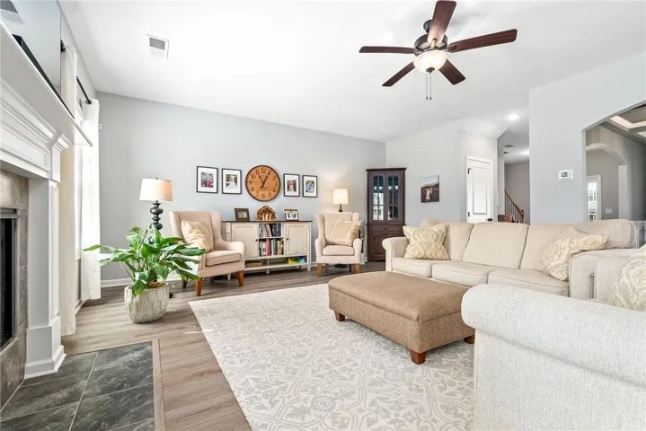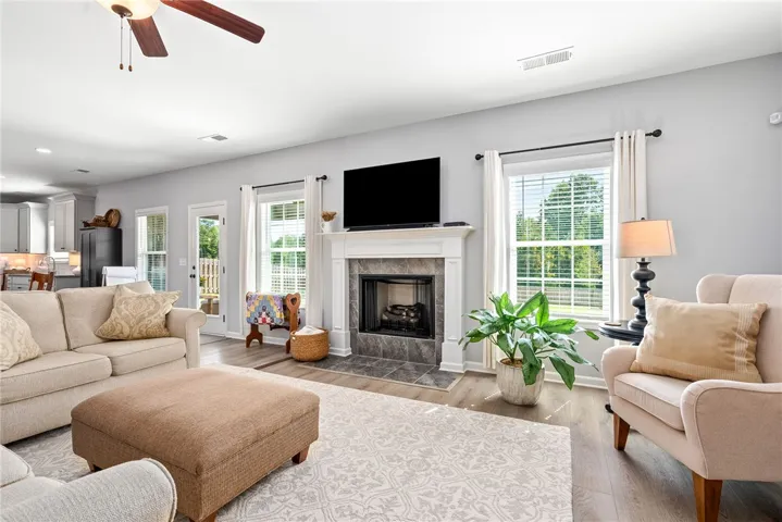 Conveniently located in Opelika and just minutes from I-85, this home offers the perfect combination of style, space, and accessibility. From the moment you arrive, you’ll love the charming curb appeal, welcoming front porch, mature landscaping that enhances the beauty of the front yard. Inside, the bright open floor plan is filled with natural light and features gorgeous flooring and modern finishes throughout. The kitchen is a true standout with crisp white cabinetry, granite countertops, stainless steel appliances, a spacious island perfect for gathering, and the refrigerator will remain with the home. It flows seamlessly into the dining area and inviting living room with a cozy fireplace and views of the backyard—ideal for entertaining or everyday living. The home is also equipped with a reverse osmosis water filtration system, providing clean, purified drinking water right from the tap. Upstairs, you’ll find a spacious primary suite offering a relaxing retreat with a spa-like bath featuring dual vanities, a tiled walk-in shower, soaking tub, and generous closet space. The additional bedrooms are well-sized, and the convenient upstairs laundry room makes daily living easy and efficient. The true two-car garage offers excellent functionality, including a dedicated nook perfect for a deep freeze or additional storage. Outside, the fenced backyard includes a detached storage building with plug-in power—ideal for hobbies, tools, or extra storage space. There is also a third-car paved parking pad, giving you additional parking flexibility for guests or extra vehicles. Enjoy the covered back patio complete with a stunning stone fireplace—perfect for game days, cool evenings, or hosting friends. For added security and convenience, the home includes security cameras. With stylish finishes, thoughtful upgrades, functional space, and an unbeatable location close to I-85, shopping, dining, and Auburn University, this Opelika home truly checks every box.