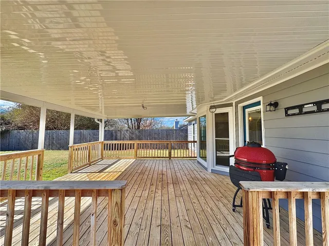 Perfectly located and move-in ready! This 3-bedroom, 2-bath home offers convenience to schools, shopping, restaurants, and MORE while sitting on a beautiful piece of land with a privacy-fenced, flat backyard. Enjoy outdoor living on the large covered deck, perfect for entertaining, relaxing, or hosting gatherings year-round. Inside, you’ll find LVP flooring throughout with tile in the bathrooms, creating a stylish and low-maintenance space. All bedrooms feature ceiling fans for added comfort. The kitchen comes complete with a refrigerator, and in the back, a storage shed provides extra space for tools or outdoor equipment. The home has seen numerous updates throughout. Major system updates include all windows replaced in 2021, a two-year-old HVAC, and a recently inspected roof.