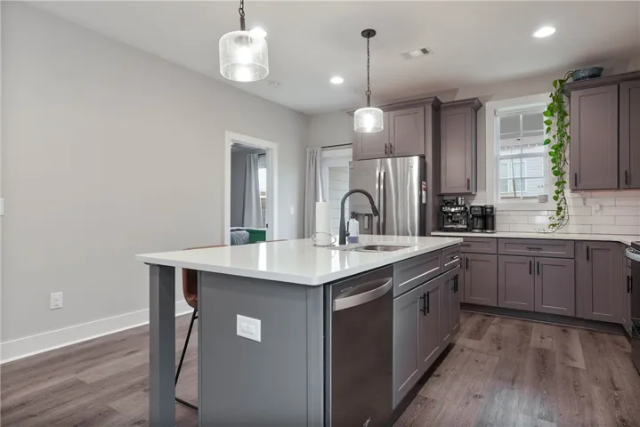 This home is a rare find in Fox Run Village offering 3 bedrooms, 2 bathrooms, and a two-car garage. Step inside to discover an open, light-filled living area with vaulted ceilings and an inviting, thoughtfully designed layout. The seamless flow between the kitchen and living spaces makes both everyday living and entertaining effortless. The primary suite is a true retreat, featuring a walk-in shower and a stunning accent wall that adds character and charm. Outside, you’ll enjoy a fully fenced backyard with beautiful landscaping—perfect for pets, play, or relaxing evenings outdoors. Conveniently located just minutes from downtown Opelika and easy access to the interstate, this home combines comfort, style, and convenience.