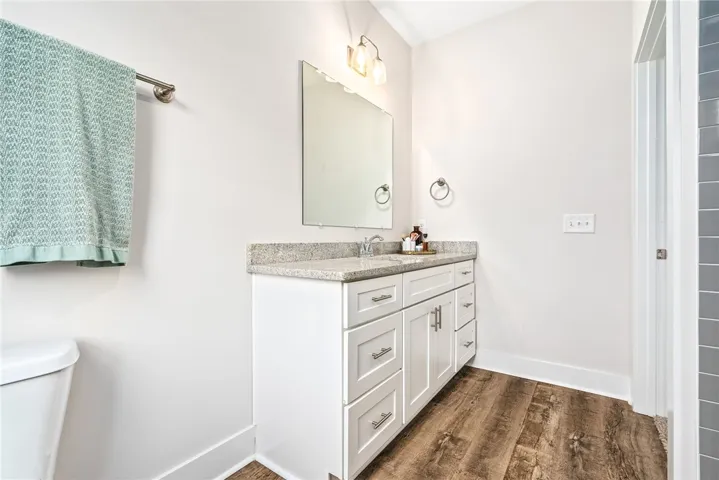 The living space opens seamlessly into the kitchen and dining area, ideal for everyday living and entertaining. The kitchen features stainless steel appliances, granite countertops, custom wood cabinetry, and a large pantry providing excellent storage. The primary bedroom offers a comfortable retreat with a private en suite bathroom, while the secondary bedroom and full bath provide flexibility for guests, a home office, or additional living space.