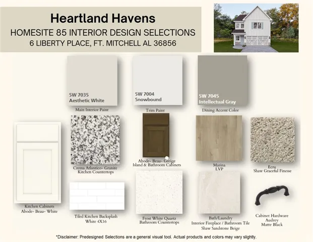 HEARTLAND HAVENS – EASY LIVING, THOUGHTFULLY DESIGNED. Welcome to the Hunter Floorplan, offering 1,729 sq. ft., 3 bedrooms, and 2.5 baths designed for comfort, connection, and everyday ease. An inviting foyer opens to a bright Great Room with a cozy wood-burning fireplace, creating the perfect place to relax or gather. The open layout flows effortlessly into the kitchen and dining area, where granite countertops, stylish cabinetry, stainless steel appliances, tiled backsplash, and a large center island make cooking, entertaining, and daily life feel seamless. Upstairs, the private Owner’s Suite features tray ceilings, abundant natural light, a spacious walk-in closet, and a spa-like bath with a garden tub, a separate shower, and an extended vanity. Two additional bedrooms, a full hall bath, and convenient upstairs laundry make daily routines simple and efficient. Luxury vinyl plank flooring enhances the main living areas with both style and durability. Step outside to the Signature Gameday Patio with its own wood-burning fireplace, TV connection, and outdoor speakers, perfect for quiet mornings, relaxed evenings, or hosting friends. Located just minutes from Fort Benning, Columbus, and Phenix City, Heartland Havens offers the convenience you need and the lifestyle you’ve been waiting for. Comfortable. Attainable. Ready for your next move.