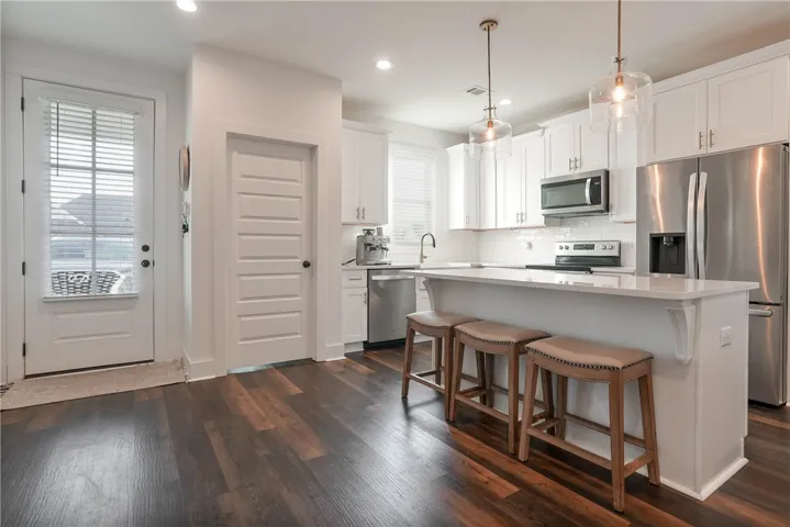Welcome to 788 Village Drive, a 2 bed, 2 bath home located in Fox Run Village. With charming curb appeal and a functional open layout, this home blends warmth and modern convenience beautifully. Inside you will find upgrades galore, abundant natural light, and a seamless flow between the living, dining, and kitchen spaces – ideal for both everyday living and entertaining. The kitchen serves as the heart of the home featuring white cabinetry, quartz countertops, a farmhouse sink, and a spacious island with seating. The primary suite offers a peaceful retreat tucked on the back of the home overlooking the backyard. It features an accent wall and a spacious closet off the ensuite bath. Step outside to enjoy a private fenced in backyard that backs up to trees with a patio space perfect for grilling, relaxing, or gathering with friends. The community has green spaces, a pool and pavilion. Designed for low maintenance living and move-in ready, 788 Village Dr offers comfort, style, and convenience all in one.