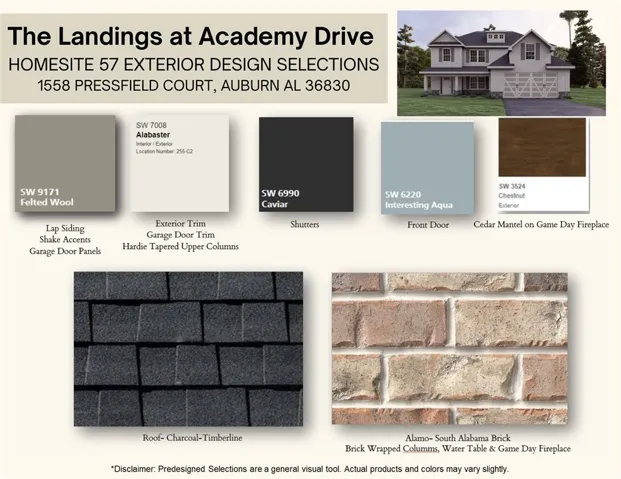 Sophisticated Entry Foyer, Formal Dining with Coffered Ceiling and Wainscotting, setting the tone for thoughtful craftsmanship throughout. The expansive great room with a cozy Gas Fireplace. The Gourmet Kitchen boasts custom cabinetry and is complete with recessed lighting, granite countertops, tile backsplash, luxury appliances, a gas cooktop with stylish vent hood, a wall oven/microwave combo, and an upgraded dishwasher. The large center island overlooks the breakfast area and great room, perfect for easy meal prep or just gathering with friends. The oversized walk-in pantry offers abundant storage and can be an optional butler’s pantry. Conveniently located near the garage entry is a half bath and our signature drop zone with built-in cubbies, to help keep life organized. Upstairs, all four bedrooms offer generous natural light, including the impressive owner’s suite with a private sitting area, dual walk-in closets, and a luxury bath featuring a tile shower, garden tub, and quartz counters. Bedrooms 2 and 3 are well-appointed, while Bedroom 4 includes its own walk-in closet. A full hall bath and laundry room on the upper level provide everyday convenience. Enjoy Luxury Vinyl Plank flooring in many of the living areas on the main level. Outdoor living at its best on our signature Gameday patio, complete with a wood-burning fireplace, ceiling fan, and outdoor speakers. Additional features include irrigation, a gas tankless water heater, 2” blinds on the front windows, a 2-car garage, and smart home technology. Westover’s elevated finishes, functional layout, and unbeatable Auburn location, near Lee-Scott Academy, Auburn High School, and prime shopping, The Landings at Academy offers luxury living at its best.
