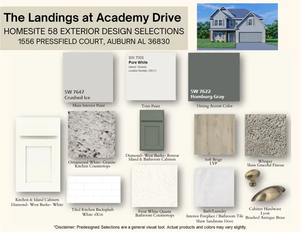 Welcome to The Landings at Academy Drive, Auburn’s premier address, where elevated design meets everyday comfort. Introducing our Hawthorn B Floorplan, offering 2,637 SF of thoughtfully crafted living space with 5 bedrooms and 3 baths. Step through the inviting foyer into a formal dining room enriched with elegant detailing. The spacious great room showcases coffered ceilings and a gas fireplace, creating a warm, refined place to relax. The open-concept kitchen impresses with a large island featuring an integrated sink and upscale dishwasher, granite countertops, tiled backsplash, recessed lighting, and stylish cabinetry. Enjoy the Gourmet Kitchen Package, complete with a gas cooktop, stainless vent hood, and built-in oven/microwave, plus a walk-in pantry, perfect for effortless organization. The kitchen flows seamlessly into the breakfast area for casual dining. A main-floor bedroom with a full bath that offers convenience for guests or multigenerational living. Upstairs, a huge step-up media room provides the ideal retreat for movie nights, gaming, or an additional living area. The well-appointed owner’s suite features tray ceilings, abundant natural light, and a spa-inspired bath with a garden tub, tiled shower, quartz double vanity, and a generous walk-in closet. Additional bedrooms are bright and spacious, with the laundry room thoughtfully placed near all bedrooms. Outdoor living shines on Hughston Homes’ signature Gameday Patio, complete with a wood-burning fireplace, TV pre-wire, all-weather surround sound speakers, and a ceiling fan, the perfect setting for fall football and year-round entertaining. Luxury continues with irrigation, a gas tankless water heater, 2″ blinds on front windows, smart home technology, and a 2-car garage. With elevated finishes, a functional, friendly layout, and an unbeatable Auburn location near Lee-Scott Academy, Auburn High School, and premier shopping, The Landings at Academy delivers luxury living at its best.