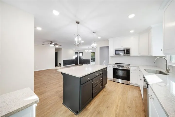 Located just minutes from the beautiful Chattahoochee River, this stunning home has been fully updated with modern finishes and thoughtful design. Step inside to find a kitchen with new cabinets, granite countertops, stylish lighting, and fresh flooring. Upgraded systems including new plumbing fixtures and a brand-new HVAC. Spacious master suite featuring his-and-her closets, a double vanity, a new tile shower, and tile flooring. This home has beautifully decorated interiors that feel warm and inviting. With 4 bedrooms and 3 full bathrooms, this home has space for the whole family while offering the comfort of an open concept for gatherings with family and friends. Spacious backyard with a new privacy fence.