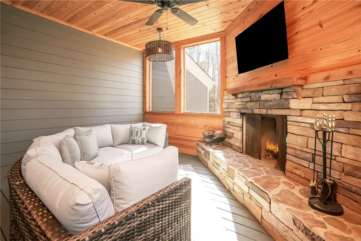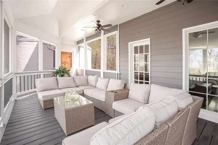 The primary suite offers a true retreat with a spa style bath, while a 250 sq ft screened porch overlooks the peaceful wooded setting.