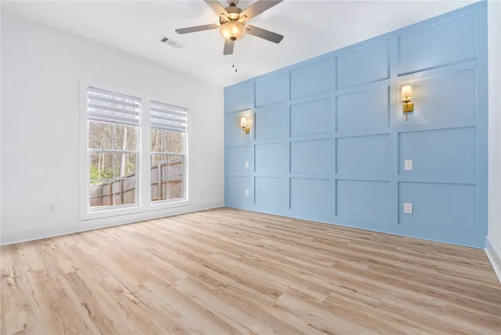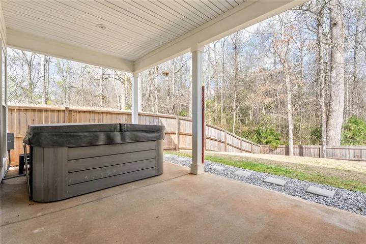 Like NEW at BETTER THAN NEW PRICE!! This popular three bedroom, two bathroom plan offers 1400 square feet with NO CARPET! The front door opens to a spacious foyer and a coat closet. The foyer leads to the expansive kitchen and dining room area. This kitchen has ample cabinetry, counter space and nice size pantry! Great size laundry room off kitchen with additional storage. The kitchen leads to the living room which features 9 foot ceilings and windows that flood the room with natural light! The primary suite off the living room includes upgraded paneling. Primary bath includes double vanity and an upgraded spacious tiled shower. LARGE walk-in closet. The living room also gives way to the covered back porch with for ideal outdoor living in COMPLETE PRIVACY! The covered porch is the perfect for enjoying company or quiet time. Backyard is fenced. Neighborhood amenities include a resort-style pool and pavilion! Refrigerator and washer/dryer will remain! Custom window shades throughout home. This home is ready for immediate occupancy!! *Neighborhood allows short term rentals**
