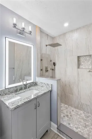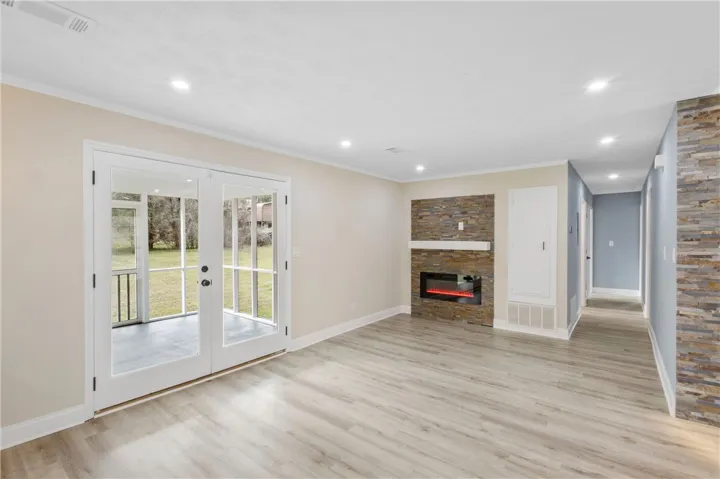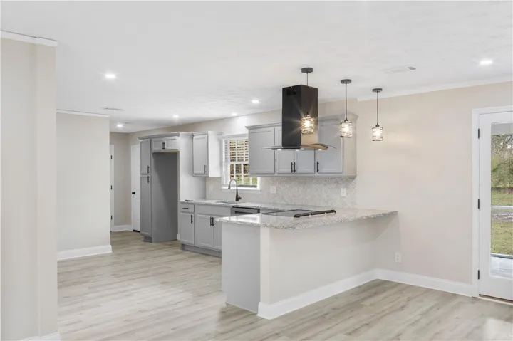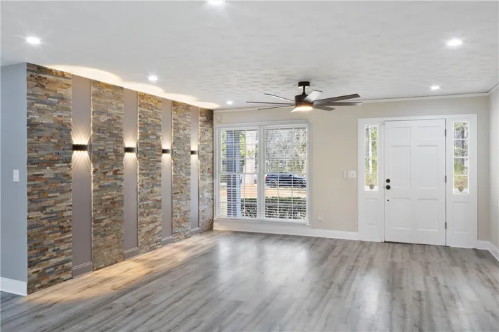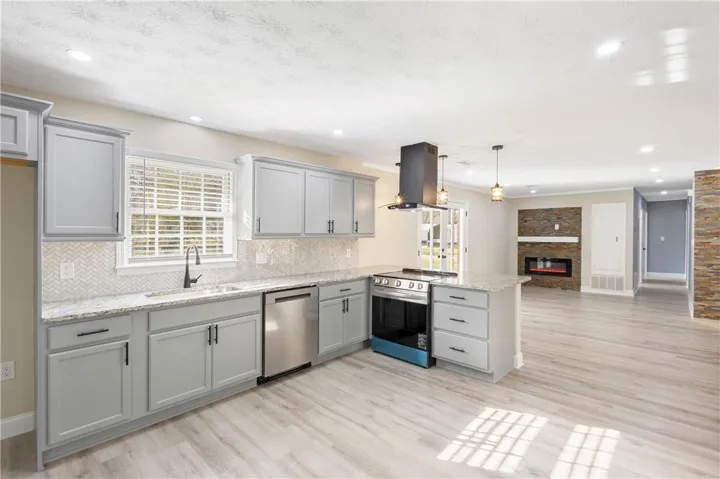 If you’ve been searching for a home that feels like new construction without the wait, this beautifully updated brick home delivers. Thoughtfully renovated with modern finishes and timeless charm, it offers the comfort and style today’s buyers are looking for. A classic Southern style covered front porch adds inviting curb appeal, while the BRAND NEW ROOF with architectural shingles provides both beauty and peace of mind. Inside, the open floor plan creates a natural gathering space where the living room, kitchen, and dining area flow together effortlessly. A striking feature wall with custom lighting and a sleek electric fireplace anchors the living space, while large windows fill the home with natural light that highlights the new LVP flooring throughout.The kitchen shines with new stainless steel appliances, a modern vent hood, and gorgeous granite countertops, creating a fresh and stylish space that works perfectly for everyday living or entertaining. Both bathrooms have been updated with new vanities. The guest bath features a tiled tub surround, while the primary suite offers a spa-inspired retreat with a beautifully designed shower complete with body sprays, a modern rain shower head, and a handheld sprayer bringing a touch of resort style comfort to your daily routine.Enjoy peaceful mornings or relaxing evenings on the screened porch overlooking the private, flat backyard. A side entry garage provides convenient covered parking, and the location in the heart of Smiths Station.