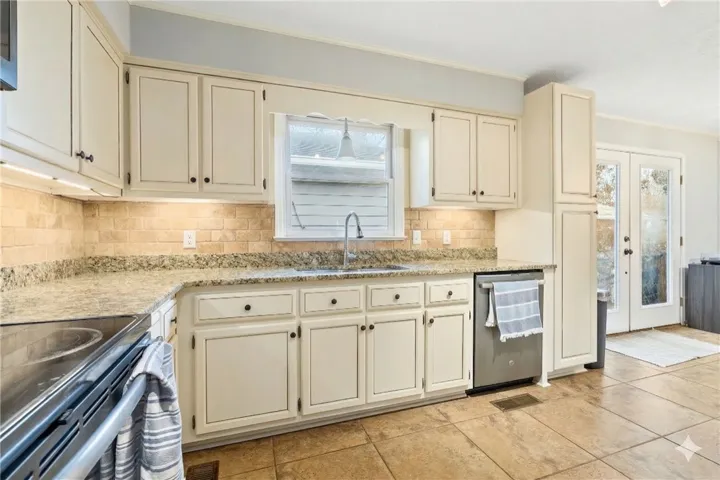 Inside, the open-concept split floor plan flows seamlessly from the oversized living room to a chef-inspired kitchen. Remodeled in 2016, the kitchen boasts sleek granite countertops, custom backsplash, and stainless steel appliances. Whether you’re a hobbyist needing the oversized double garage/workshop or a pet owner who appreciates the full fence, this home offers a rare level of detail and care.