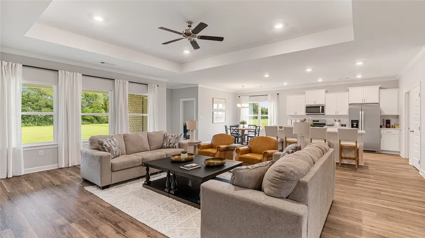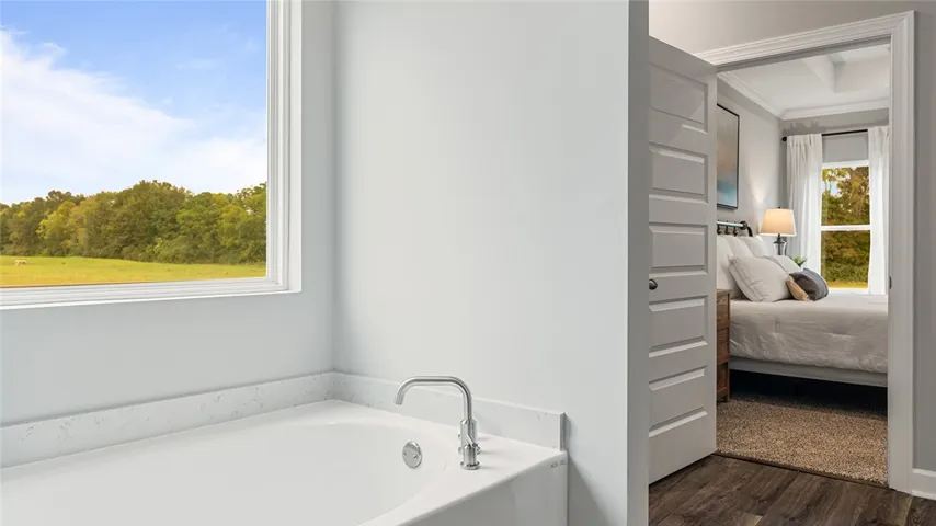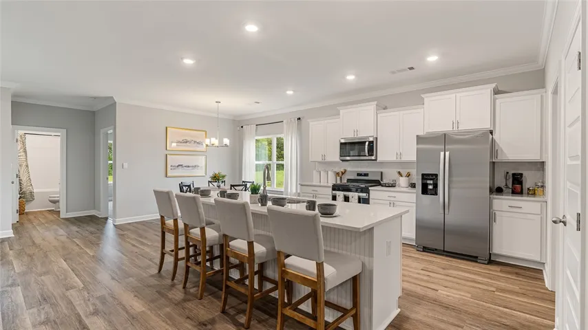 Welcome to 307 Nicklaus Court, our Noah floorplan showcased in the beautiful Links Crossing community in Auburn, Alabama. This thoughtfully crafted one-story home offers 4 bedrooms, 3 bathrooms, and approximately 2,272 square feet of inviting living space, designed to feel both comfortable and effortlessly functional. As you step inside, you’re greeted by a foyer, with convenient access to the spacious 3-car garage, 2 bedrooms with a connecting bathroom, and our open concept living and kitchen space just beyond. This open-concept kitchen, dining area, and great room create a bright, airy environment ideal for everyday living and entertaining, featuring soft close cabinet and drawers, Carrara Miami Quartz countertops, stainless steel appliances, an eight-inch undermount sink with Brantford chrome fixtures, and an open pantry with built-in shelving, all flowing naturally to the covered porch for seamless indoor-outdoor enjoyment. An in-law suite is also conveniently attached to the open concept living space. Tucked in the opposite corner, you’ll find the private primary suite which serves as a peaceful retreat with a separate standing shower, a garden tub, a double vanity sink with quartz countertops, Brantford chrome fixtures featured in all baths, a private water closet, and a spacious walk-in closet. Every home in Links Crossing includes our Home Is Connected® Smart Home Technology Package, giving you the convenience of controlling your home from your smart device whether you’re near or away. Photos may be of a similar home and not necessarily the subject property; images are representational only. Contact one of our New Home Specialists today to schedule your private tour!
