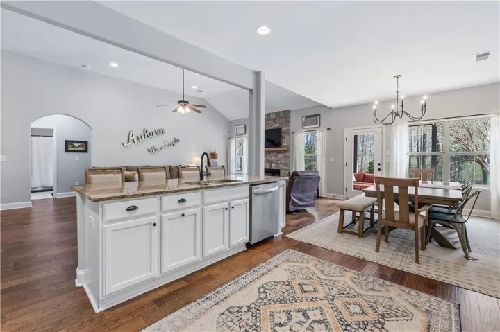 Welcome to easy, effortless living just minutes from the heart of Auburn. Ideally located north of town and about 5 minutes to Jordan Hare, this beautifully maintained, one level home offers the perfect blend of convenience, comfort and space. With four bedrooms and three baths, the floor plan is truly a standout, designed for both everyday living and entertaining with a natural easy flow from room to room. Tall ceilings elevate the entire home, creating an open, airy feel with plenty of natural light, while fresh paint throughout gives it that crisp move in ready finish buyers are looking for. Step outside and you’ll find one of the home’s best features: a huge, fully fenced backyard that offers both privacy and versatility. Whether it’s gatherings, pets, play, or simply enjoying a quiet evening, this flat, usable space is a rare find and adds so much to the overall lifestyle. Beautiful, well kept and ready for her next chapter this one is as easy as it gets.