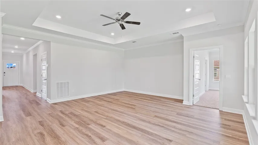 Welcome to 2881 Bunker Drive, our Willow floorplan showcased in the beautiful Links Crossing community in Auburn, Alabama. This thoughtfully crafted one-story home offers 4 bedrooms, 3 bathrooms, and approximately 1,942 square feet of inviting living space, designed to feel both comfortable and effortlessly functional. As you step inside, you’re greeted by a foyer, with convenient access to the laundry room, 2 bedrooms with a connecting bathroom, an in-law suite, and our open concept living and kitchen space just beyond. This open-concept kitchen, dining area, and great room create a bright, airy environment ideal for everyday living and entertaining, featuring soft close cabinet and drawers, Carrara Miami Quartz countertops, stainless steel appliances, an eight-inch undermount sink with Brantford chrome fixtures, and an open pantry with built-in shelving. Tucked away is the private primary suite which serves as a peaceful retreat with a separate standing shower, a garden tub, a double vanity sink with quartz countertops, Brantford chrome fixtures featured in all baths, a private water closet, and a spacious walk-in closet. This home also includes a 3-car garage. Every home in Links Crossing includes our Home Is Connected® Smart Home Technology Package, giving you the convenience of controlling your home from your smart device whether you’re near or away. Photos may be of a similar home and not necessarily the subject property; images are representational only. Contact one of our New Home Specialists today to schedule your private tour!