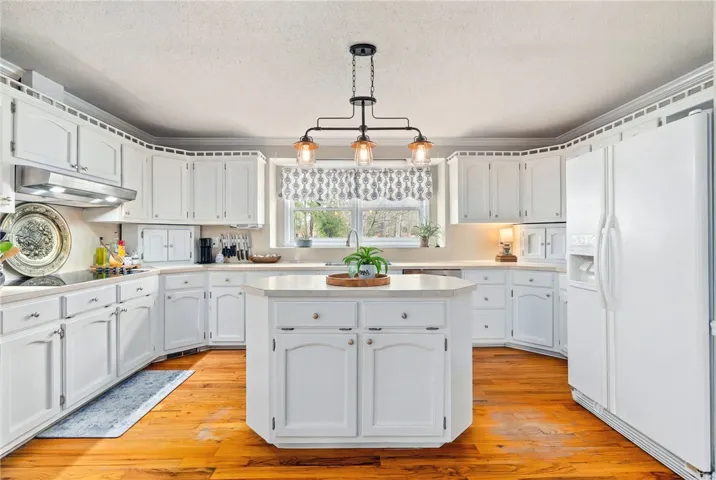 Enjoy multiple outdoor spaces including composite decks, screened porch, open deck, and a large updated front porch with new gable roof. Additional highlights include barn with power and water, paved circular driveway, RV pad with electrical hook-up, whole-house generator wiring, refinished pool deck, and updated guest bathroom.