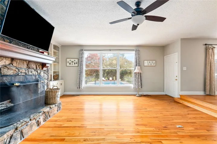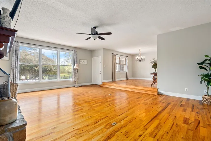 Rare find! Nice family home on 5 private acres in a convenient in-town location with easy interstate access. Features a sunken den with fireplace overlooking the in-ground pool with new liner, plus lots of wood floors throughout.