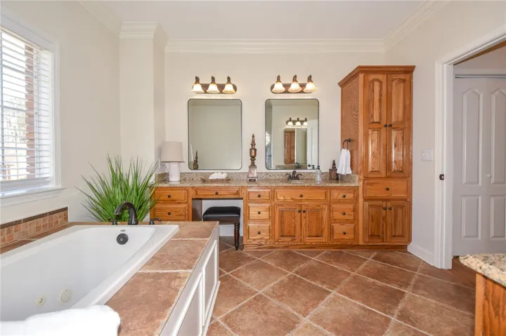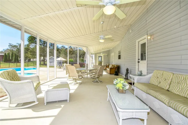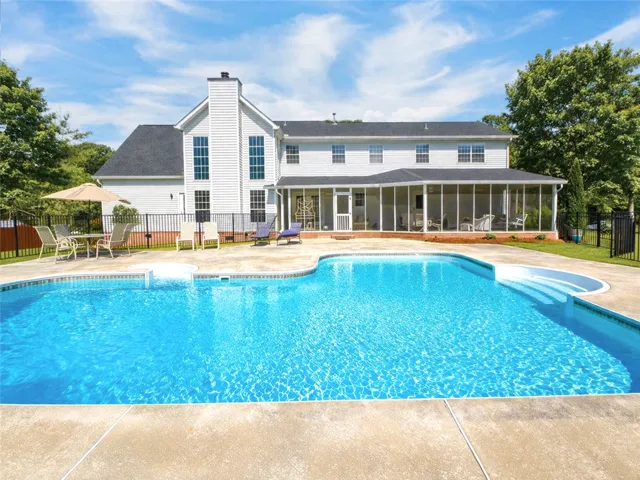 Welcome to this beautifully designed home that perfectly blends comfort and exceptional outdoor living. The thoughtfully crafted floor plan offers a spacious living room & a cozy family room on the main level, ideal for both entertaining & relaxation. The kitchen boasts of granite countertops, ample cabinetry & plenty of space for cooking. The main-level primary suite is generously sized, offering a peaceful escape. The en suite bathroom features double vanities, tile shower & a luxurious jacuzzi tub. Upstairs, you’ll find 3 additional bedrooms, including 1 with its own private bathroom. The additional living room provides the perfect flex space for a media room or playroom. Grab a cold drink & enjoy your own private retreat complete with a screened in porch overlooking the sparkling pool.