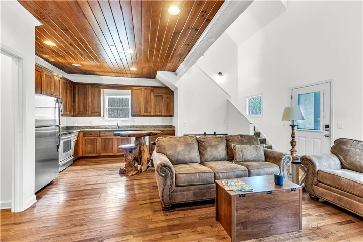 Cozy Cabin Charm: The cabin features rustic decor with modern comforts, including a fully equipped kitchen, comfortable living area, and 3 inviting bedrooms with 2 full bathrooms. Sold furnished!
