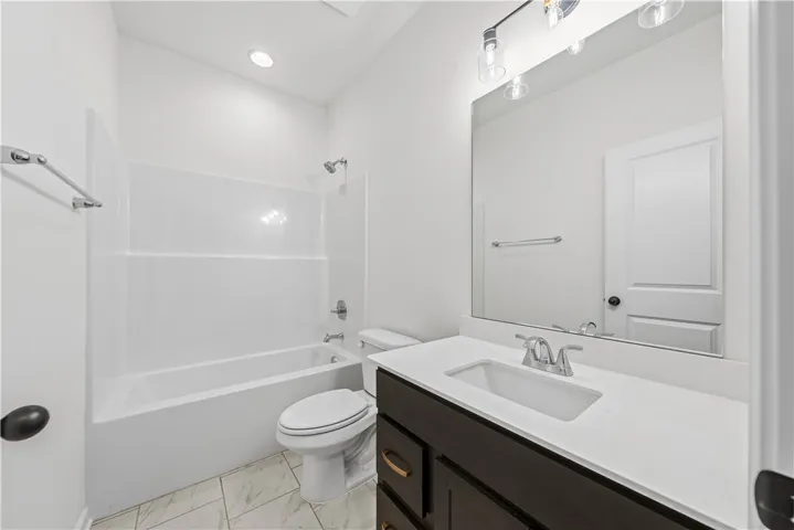 The owner’s suite features a garden tub, tiled shower, and huge walk-in closet. Secondary bedrooms share a full bath and nearby laundry for convenience.
