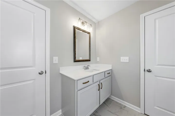 Double doors open to an expansive media room, ideal for entertaining or relaxing. The owner’s suite features tray ceilings, abundant natural light, a spa-inspired bath with garden tub and tiled shower, and a huge walk-in closet. Laundry and secondary bedrooms are conveniently located upstairs.