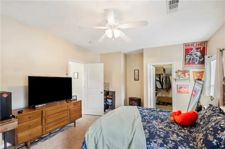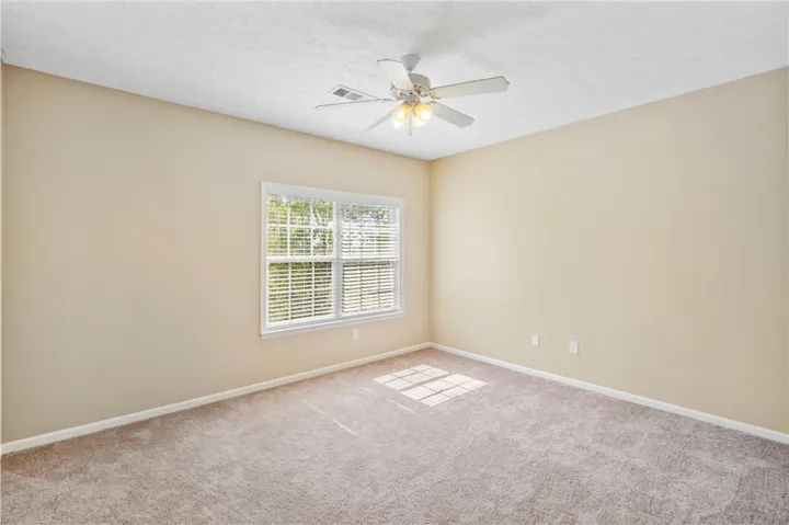 The primary bedroom is on the main level and offers a walk-in closet plus a private bath with double vanity. Upstairs, you’ll find two additional bedrooms that share a full bathroom. Covered parking for two vehicles completes this great home. Neighborhood Pool.
