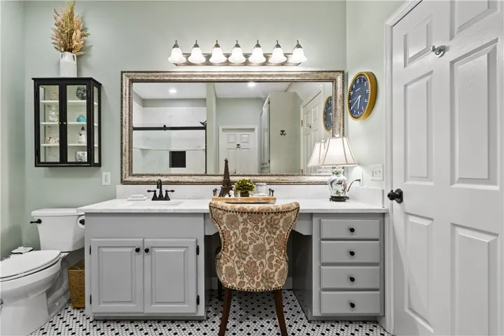 The owner’s suite boasts an updated bath w/painted cabinetry, granite counters, walk-in shower, charming tile floors & two oversized closets—one large enough for an office, nursery, etc. Guest rooms each feature full baths w/distinctive updates! Huge laundry/hobby room w/ folding bench, utility sink, washer/dryer (incl), more storage & outside access.