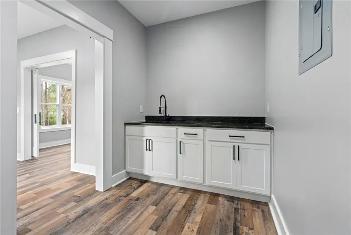 Need a dedicated workspace? The private office or flex space is tucked away with stylish sliding barn doors—perfect for working from home or creating a quiet escape.
