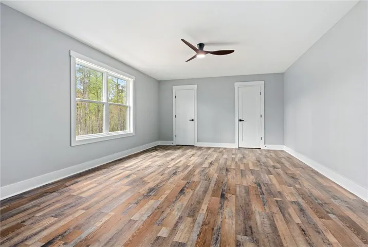 The main-level primary suite offers a true retreat, complete with a spa-style bathroom and an expansive walk-in closet. Every bedroom in the home includes its own walk-in closet, while the generously sized secondary bedrooms upstairs provide flexibility and comfort for family or guests.