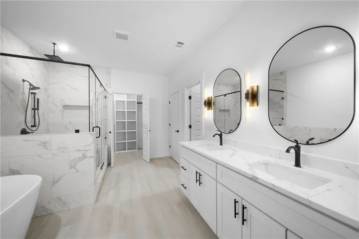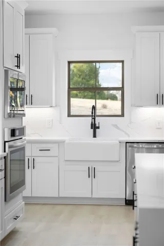 Check out this stunning new construction near Lake Oliver, nestled in a highly sought-after neighborhood! This spacious home offers 4 bedrooms, 2.5 bathrooms, 4th Bedroom would be perfect for a home office, playroom, or guest space. Two of the bedrooms are connected by a convenient Jack and Jill bathroom, while the split floor plan ensures added privacy. LVP flooring throughout the home. Enjoy the open-concept kitchen and dining area, featuring quartz countertops, a large island ideal for cooking, entertaining, or casual meals. The kitchen is thoughtfully designed with both style and function in mind. The master suite boasts 10-foot ceilings, a luxurious bathroom with a separate tub and shower, dual vanities, and his and hers walk-in closet. The living room offers an inviting space with an electric fireplace. A two-car garage and extended driveway provide plenty of parking. Practical features include a mudroom and laundry area with access from both the garage and backyard. Relax on the covered front or back porch, with the back having a ceiling fan and enjoy the peace and privacy of a home tucked away from the main road. All this, just minutes from shopping, dining, recreation, and Lake Oliver. With 2255 square feet of well-designed space, this property is ready to welcome its new family to come in and call home!