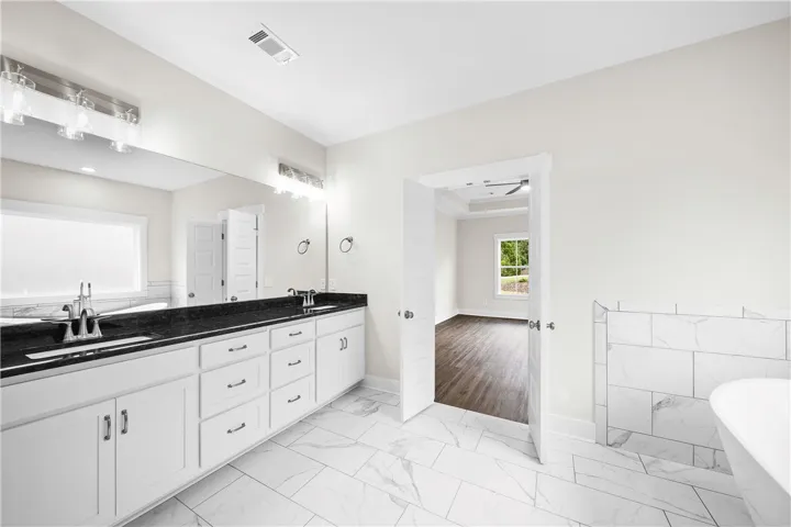 FALL IN LOVE WITH THIS BEAUTIFULLY DESIGNED HOME FEATURING A MAIN-LEVEL PRIMARY SUITE WITH DOUBLE WALK-IN CLOSET, SOAKING TUB, AND TILED WALK-IN SHOWER.THE OPEN LAYOUT IS PERFECT FOR ENTERTAINING, WITH AN OVERSIZED GREAT ROOM, CHEF’S KITCHEN WITH ISLAND, WALK-IN PANTRY, AND A FLEX ROOM THAT MAKES THE IDEAL OFFICE OR LIBRARY. ? ADDITIONAL BEDROOM WITH PRIVATE BATH ON THE MAIN LEVEL.TWO BEDROOMS & FULL BATH UPSTAIRS. BONUS ROOM UPSTAIRS READY TO BE FINISHED OUT FOR EVEN MORE SPACE, 2-CAR GARAGE.