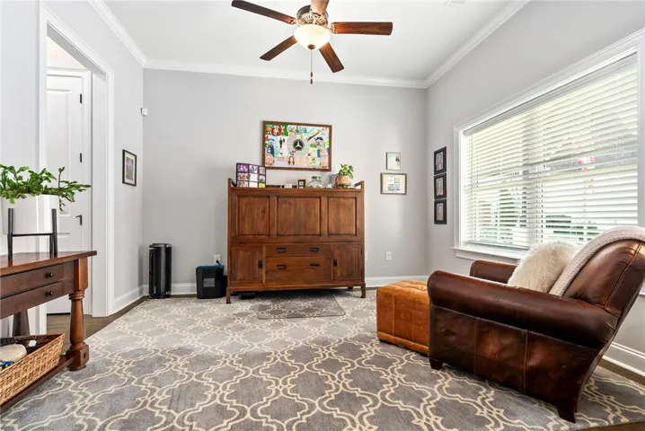 Just off the main living space, a flexible front room can easily serve as a formal dining room, office, or additional sitting area depending on your needs. The oversized primary suite is conveniently located on the main level and connects to a spacious primary bathroom, with the primary closet thoughtfully positioned near the laundry room for added convenience.