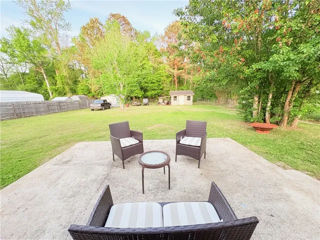 Situated on approximately 0.42 acres, the property offers a large fenced-in yard—perfect for pets, play, or enjoying the outdoors. Two storage buildings provide plenty of extra space for storage, hobbies, or workspace needs.