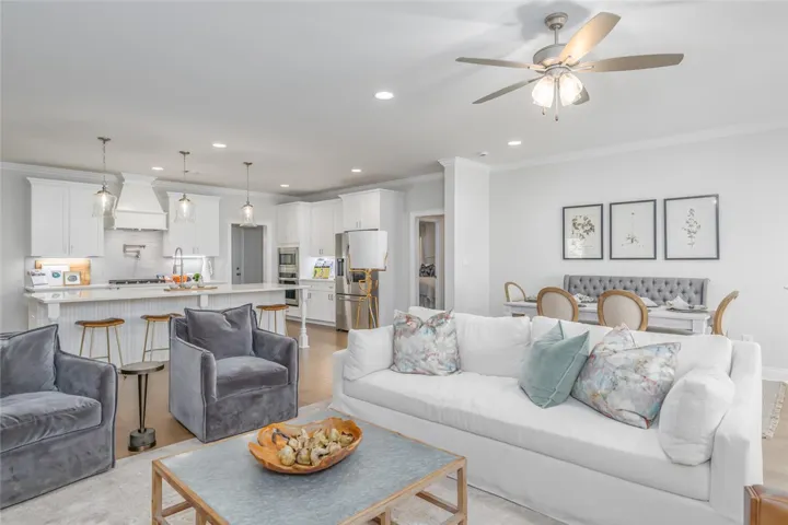 –MODEL HOME NOT FOR SALE–The Bainbridge II offers refined elegance and spacious living with a layout designed for comfort and entertaining. A formal dining room at the front of the home flows from a graceful foyer into an expansive great room and kitchen, ideal for gatherings. The kitchen features a granite island with seating, perfect for hosting or casual meals. A private retreat offers a large layout, spa-like bath, and generous storage. Additional main-level living areas provide flexibility and function, while an upstairs bonus room with sitting area, full bath, and closet adds even more versatility to this well-planned design.