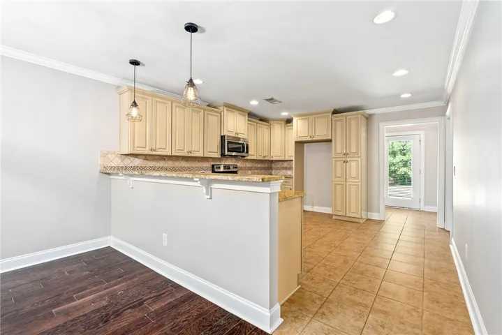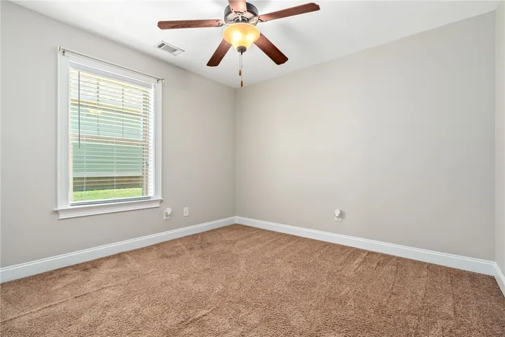 Welcome Home! As you approach 2423 Churchill Circle in sought after Lundy West you’ll appreciate the curb appeal of this charming home. You will be greeted by entry foyer leading to an open Family Room featuring trey ceiling and an open flow to the Kitchen and Dining Areas. The spacious Kitchen offers a great workspace and features granite countertops, tiled backsplash, and stainless range/oven, dishwasher, and microwave. The Owner’s Suite is nicely sized and offers a tiled bathroom with soaking tub, tiled shower, double vanity, and walk-in closet. Two guest bedrooms are privately situated, equipped with ceiling fans, and share a hallway bathroom. A separate laundry room is located just off the rear entry. Crown molding is found throughout most of the home! On the exterior you’ll find a newly updated entertaining patio and private fenced yard space ideal for relaxing after a long day at work! FRESHLY PAINTED EXTERIOR! Enjoy community amenities including a playground and neighborhood pool!