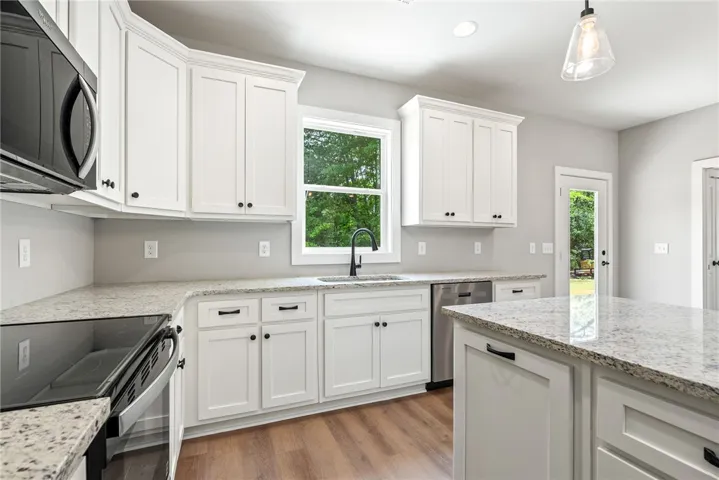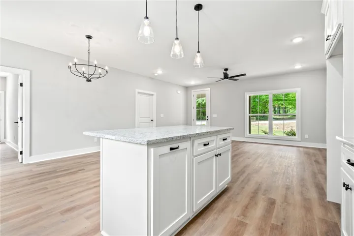Welcome home to peaceful country living with modern style and comfort! Nestled on a beautiful one-acre lot, this thoughtfully designed 3 bedroom, 2 bath home offers the perfect blend of privacy and functionality. Upon stepping inside you are greeted with an open floor plan featuring a seamless flow between the living, dining and kitchen areas. The kitchen is a standout with custom cabinetry, granite countertops, and a spacious eat-in island, perfect for gathering with family and friends. The split bedroom layout provides added privacy with the guest bedrooms tucked away on the opposite side of the home from the primary suite. The primary bath features a custom tile shower and double vanities, creating a spa-like retreat. Enjoy the outdoors with a large front porch to sit and unwind from the day on as well as a huge front and backyard for entertaining. Plenty of space to add a storage building or build a workshop if desired. Don’t miss this home that checks all the boxes!!
