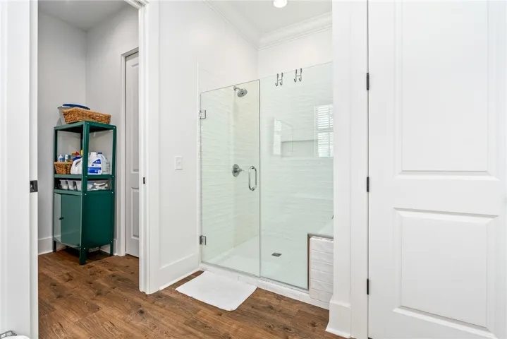 The main-level primary suite is a true retreat with a large bathroom that includes a soaking tub, separate shower, and direct access to the adjoining laundry room for added convenience. A second bedroom and full bath are also located downstairs (perfect for guests or a home office).