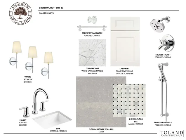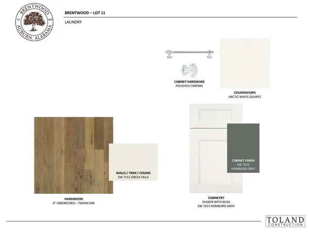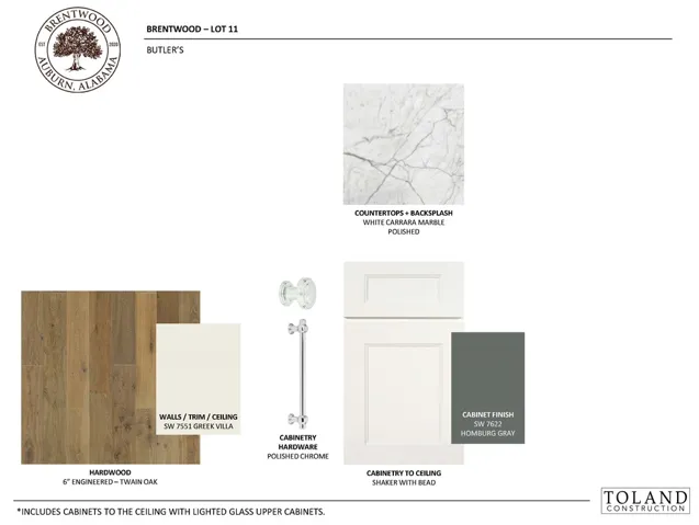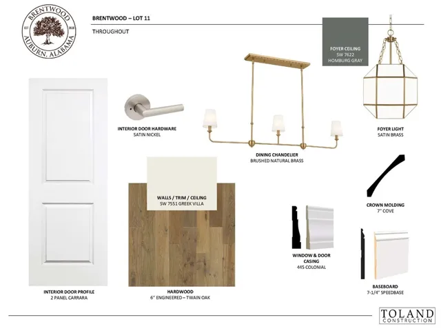 The Aspen Plan offers exceptional curb appeal with a full brick exterior, warm cedar accents, a charming knee wall, and a courtyard-entry garage. This versatile design includes four bedrooms, a bonus room, and a dedicated study accessed from the foyer through French doors. At the front of the home, the formal dining room connects to the kitchen via a well-appointed butler’s pantry. The kitchen and great room combine to create a spacious gathering area anchored by a cast stone fireplace. Both the kitchen and butler’s pantry are finished with custom cabinetry and marble countertops. The main level primary suite is thoughtfully designed with a sizable bedroom, zero-entry, floor-to-ceiling frameless walk-in shower, an expansive double vanity, a water closet, & a generous walk-in closet with custom wood shelving. The closet opens directly to the laundry room, which includes custom cabinetry and a convenient secondary entrance at the owner’s entry. Two additional main-level bedrooms—each with hardwood flooring—and a full bath add to the home’s flexibility. Upstairs, a large landing/bonus room—ideal for a playroom, media space, or gym—leads to a private bedroom suite, perfect for guests or a quiet retreat. Outside, a covered Trex deck provides an exceptional space for outdoor living and entertaining. Brentwood’s location is hard to beat, offering immediate access to I-85 and close proximity to Tiger Town, Saugahatchee Country Club, local schools, and both downtown Auburn and Opelika.