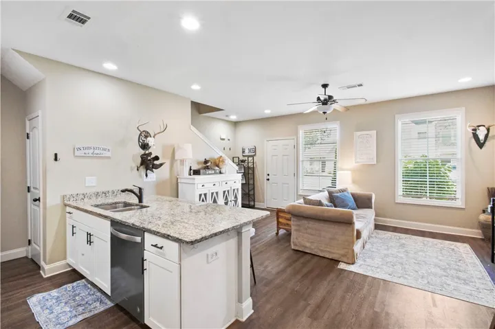 Welcome to 3855 Academy Drive #505 in Opelika—a beautifully designed townhome offering comfort, style, and unbeatable convenience! Step inside to an open floor plan. The kitchen features white cabinetry, granite countertops, a stylish tile backsplash, and a bar area. Breakfast Room. Main-level primary suite offers a private retreat with a spacious walk-in closet and a well-appointed en suite bath featuring a double vanity. You’ll also appreciate the added convenience of a half bath and laundry area on the first floor. Upstairs, you’ll find two generously sized bedrooms along with a full bath that includes a double vanity. Located in a highly convenient Opelika location, this townhome combines low-maintenance living with modern finishes and thoughtful design. Don’t miss your opportunity to call this one home!